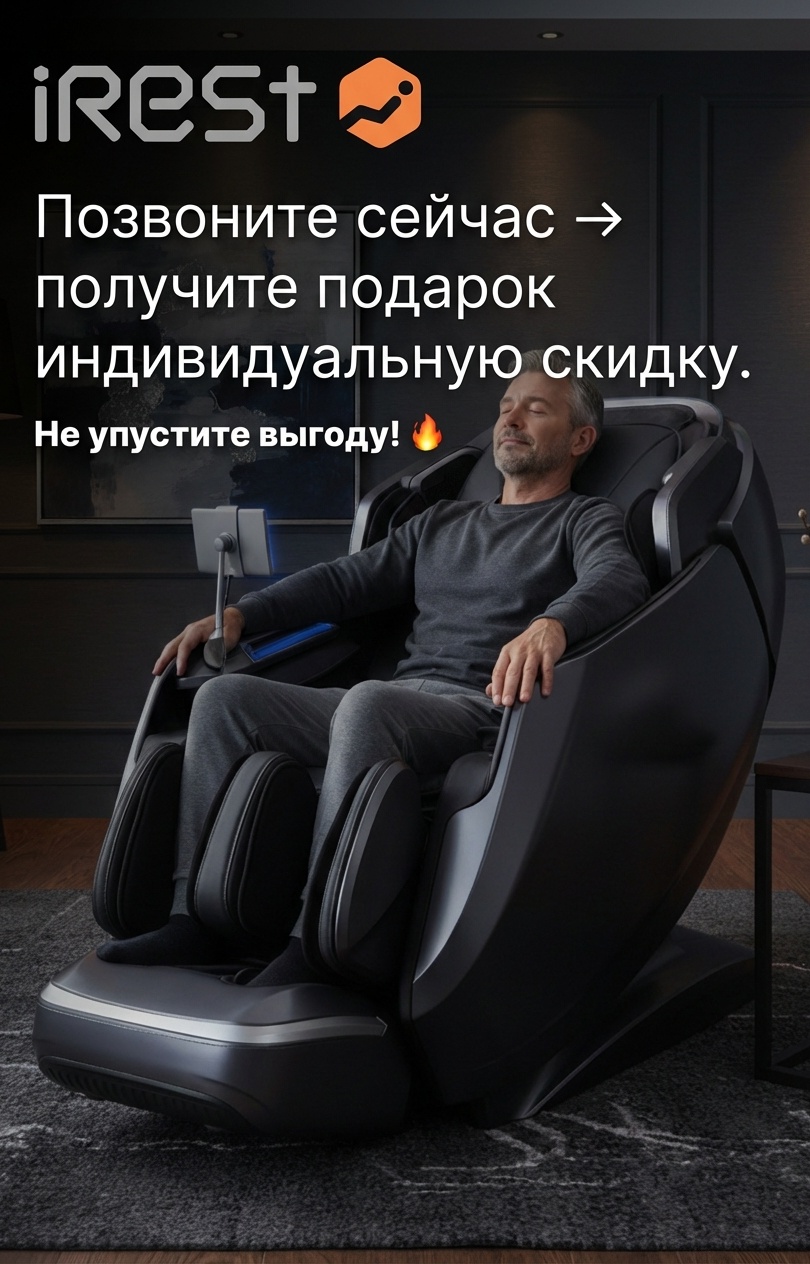 Мечтаете о персональном SPA у себя дома? В фирменном интернет-магазине — официальные массажные кресла мирового бренда iRest с гарантией до 7 лет, обменом/возвратом, бесплатной доставкой по Москве. Цены от 179 000 ₽ — премиум-качество без переплат!